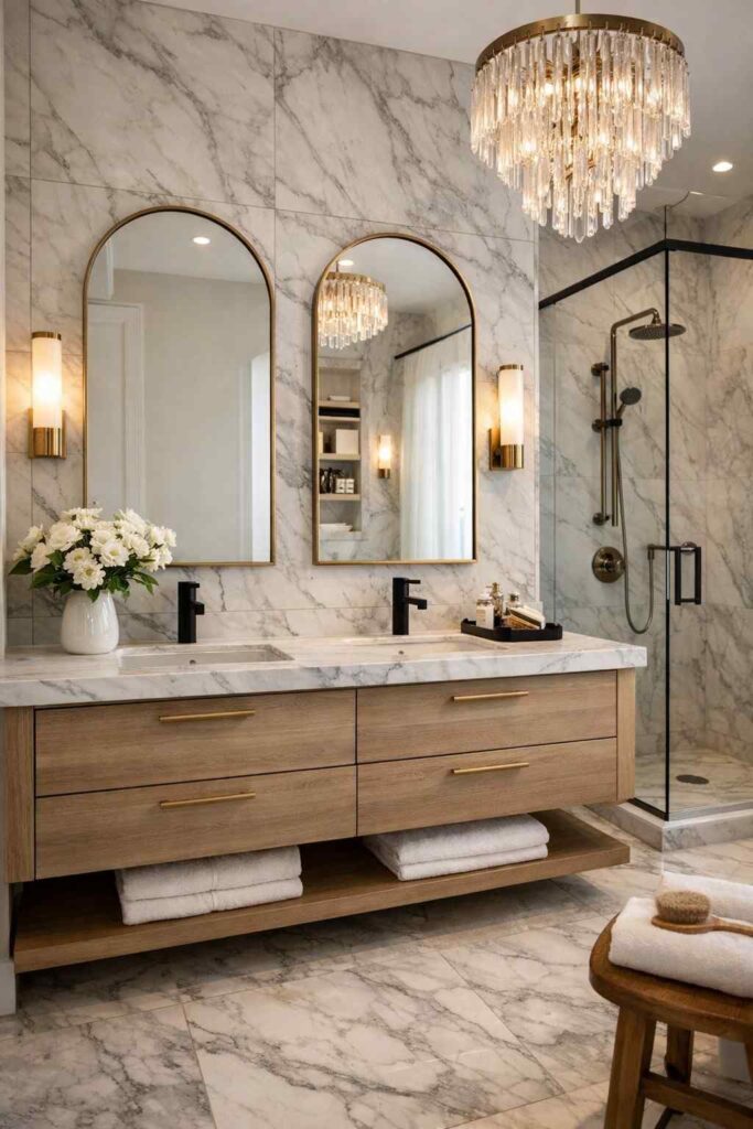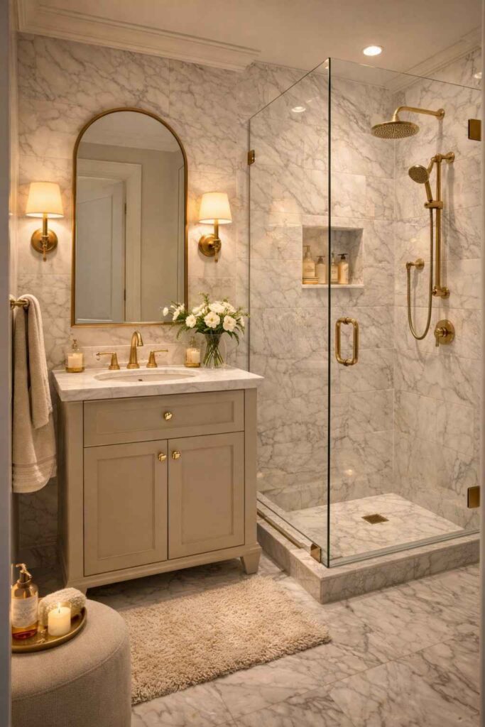 You can add marble tiles to a shower wall or install a marble vanity top. Even small marble accents can make the space feel more expensive.